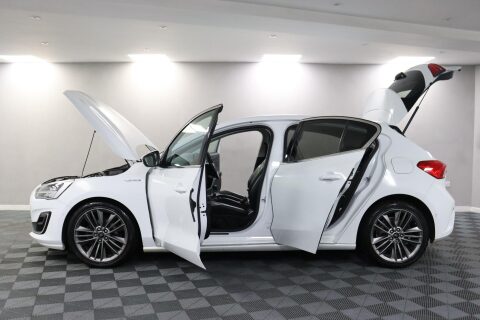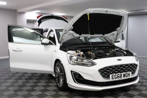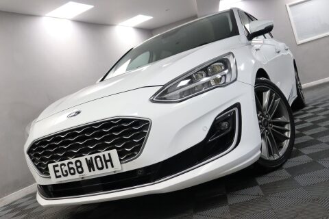 EG68WOH. Ford Focus Vignale with Lower Emissions and Faster Acceleration. Vignale models are the top of the Focus range, bringing more comfort, technology, and interior quality than the standard versions. A good match for drivers who want a well-equipped hatchback for commuting, family use, and longer motorway journeys. A 8-Inch Colour Touchscreen runs Ford SYNC 3 Navigation, Bluetooth, DAB Radio, and the B&O Play Premium Audio System. A Head-Up Display shows key driving information in view, and Selectable Drive Modes allow the driver to tailor throttle and steering response. Parking support comes from Active Park Assist, Front and Rear Parking Sensors, and a Rear Wide-View Camera. Driver assistance includes Pre-Collision Assist with Autonomous Emergency Braking and Pedestrian/Cyclist Detection, Lane Keeping Aid with Lane Departure Warning, Emergency Brake Warning, and Post-Collision Braking. An Electric Parking Brake and Keyless Entry with Keyless Start are standard on the Vignale. Comfort features include Heated Front Seats, a Heated Steering Wheel, Dual-Zone Electronic Automatic Temperature Control, 6-Way Power Adjustment for the Driver Seat, a Quickclear Heated Windscreen, and Power Folding Door Mirrors with Puddle Lights. Available to view and test drive now — book your appointment with First4Car. This vehicle comes with a good service history, featuring 4 stamps in the service book. This vehicle also has a full 12-month MOT with no advisories, a clean HPI report and a National Mileage Register Check. With a fantastic list of specifications, this could be the perfect car for you! While we use reliable third-party data, some details may vary. We recommend double-checking any specific features you're particularly interested in. We're happy to help verify this for you on request. Please note features such as Apple Carplay may require a subscription. If you have any questions please feel free to contact us ☎️ 0113 257 00 00.