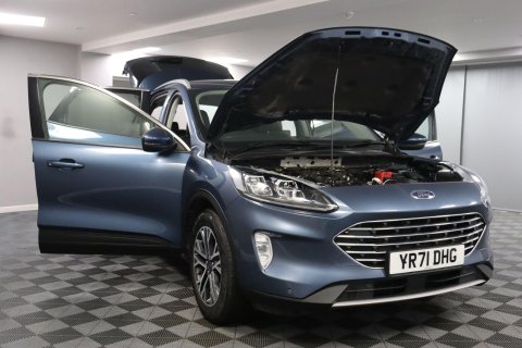 YR71DHG. Ford Kuga 1.5 EcoBlue Titanium One Owner, offering better fuel economy while sitting in a lower insurance group. The Kuga has become a popular SUV with drivers wanting space, comfort and modern technology in a vehicle that suits everyday driving and longer journeys. Inside, the dashboard centres around the 8in Tablet Style Colour Touchscreen Infotainment System running the Ford SYNC3 Navigation System, with Apple CarPlay and Android Auto for smartphone connection. DAB Radio and Bluetooth allow calls and music through the vehicle, while a 12V Power Socket is also fitted. Cruise Control with Adjustable Speed Limiter supports longer journeys. Front and Rear Parking Sensors assist with reversing and parking, working alongside the Colour Reversing Camera. Comfort is supported by Dual Zone Electronic Automatic Temperature Control, while the Quickclear Heated Windscreen helps on colder mornings. The Ford KeyFree System with Keyless Entry and Keyless Start and Ford Power Starter Button add everyday convenience. Driver assistance systems include Lane Keeping Aid with Lane Departure Warning, along with Selectable Drive Modes to adjust the driving response. Safety systems include the Anti Lock Braking System, while an Electric Parking Brake and Auto Start Stop System are also fitted. Book a test drive or reserve online. This ONE OWNER car has just been serviced and comes with a Good Service History (4 records), a new 12-month MOT with no advisories, a clear HPI report, 2 keys, and verified mileage for peace of mind. Finance is available, and we can provide a personalised video on request. Please note that some features (e.g., Navigation/CarPlay) may require an active subscription. Spec details can vary, so just ask if you’d like us to confirm anything. For more info or a finance quote, call ☎️ 0113 257 00 00.