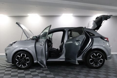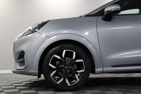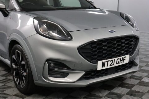 WT21GHF. Ford brought the Puma name back because many drivers wanted something with character — sporty styling, a bit more height than a hatchback and sensible running costs. The mild-hybrid setup gives Better Fuel Economy, Lower Emissions and Faster Acceleration. ST-Line X adds a sharper look on the road. The car is Silver in colour, and you’re welcome to ask for a video walk-around in daylight, as the shade can look different under artificial lighting. Inside, the 8-Inch Colour Touchscreen runs Ford SYNC 3 Navigation, B&O Audio, Bluetooth, DAB Radio, Apple CarPlay and Android Auto. A Full Digital 12.3-Inch Instrument Cluster gives a clean layout, with Wireless Charging and a 12V Power Point for devices. Selectable Driving Modes — Normal, Eco, Sport, Slippery and Trail — suit different routes. Quickclear Heated Windscreen helps on colder mornings, Electronic Air Temperature Control keeps the cabin comfortable and Rear Parking Sensors support parking. Safety features include Pre-Collision Assist with Autonomous Emergency Braking and Pedestrian-Cyclist Detection, plus Lane Keeping Aid and Lane Departure Warning. Reserve now and book a test drive. This car comes with a Good Service History (4 records), a new 12 month MOT with no advisories, a clear HPI report, two keys, and verified mileage for peace of mind. Finance is available, and we can provide a personalised video on request. Please note that some features (e.g., Navigation/CarPlay) may require an active subscription. Spec details can vary, so just ask if you’d like us to confirm anything. For more info or a finance quote, call ☎️ 0113 257 00 00.